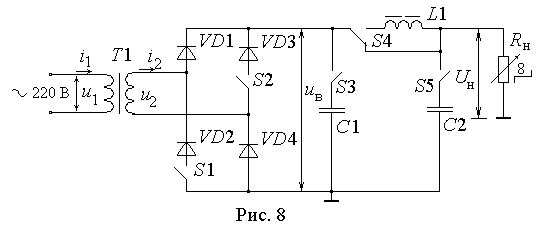 ри использовании П-образного фильтра, представляющего собой каскадное соединение емкостного и Г-образного фильтров, формы тока диода и напряжения на первой емкости фильтра близки к рассмотренным ранее.