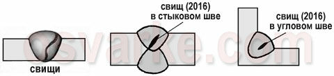 К продолговатым полостям (2015, Ab) относятся несплошности, вытянутые вдоль оси сварного шва. Свищи (2016, Ab) – продолговатые трубчатые полости, вызванные выделением газа.