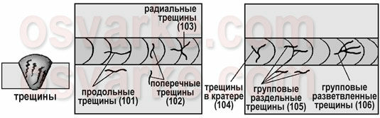 Они могут быть расположены в металле сварного шва, в зоне термического влияния, в основном металле.