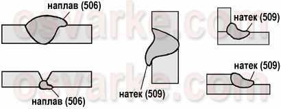 Наплав – это избыток наплавленного металла шва, натекший на поверхность основного металла. Натек – это металл шва, не имеющий сплавления с соединяемой поверхностью и образовавшийся в результате перераспределения наплавленного металла шва под действием силы тяжести. Натеки часто возникают при сварке угловых швов или стыковых швов в горизонтальном положении.