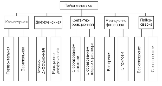 Классификацию способов пайки осуществляют по физико-химическим признакам и средствам нагрева.