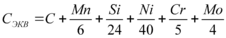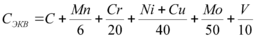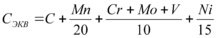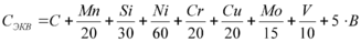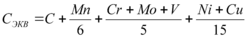 5) Сэкв = С + Mn/6 + (Cr + Mo + V)/5 + (Ni + Сu)/15 - для всех марок сталей (по журналу "Сварочное производство", 1969, № 5.).