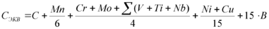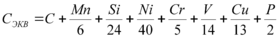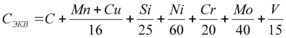 1) Сэкв. = С + Mn/6 + Сr/6 + Si/5 + Cu/7 + Р/2 + Ni/12 + Mo/4 + V/5. Это уточненная формула для всех сталей, т. е. общепринятая формула.