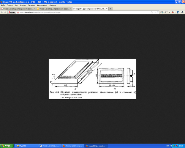 | | Рис. 4-5. Образцы, имитирующие реальное нахлесточное (а) и стыковое (б) сварное соединение: 1 — контрольный шов |