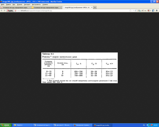 | Таблица 4-3. Режимы сварки контрольных швов | ||||