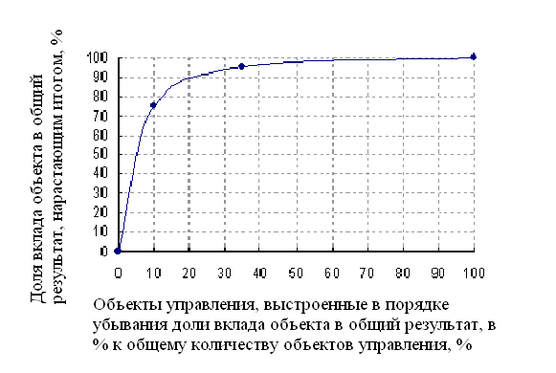 Это приложение к области управления запасами подхода, известного как принцип Парето, или правило «80/20». Подход Парето указывает на то, что в некотором множестве реальных объектов обычно имеется критическое меньшинство и тривиальное большинство. Применительно к логистике правило «80/20» интерпретируется следующим образом: 80% стоимости товара определяется 20% входящих в него компонентов; 80% ежедневного объема продукции производится за 20% рабочего времени; 80% стоимости запасов дают 20% наименований хранимых на складе запасов.