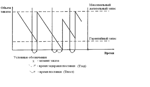 Гарантийный (страховой) запас позволяет обеспечивать потребность на время предполагаемой задержки поставки. При этом под возможной задержкой поставки подразумевается максимально возможная задержка.