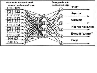 Количество входов ИНС должно соответствовать количеству использованных химических датчиков (рис. 6.1).