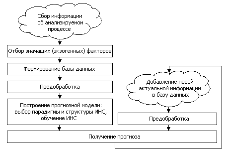 Рис.1.7. Типовой алгоритм прогнозирования, осуществляемого с использованием нейронных сетей