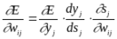 Третий множитель sj/wij, очевидно, равен выходу нейрона предыдущего слоя yi(n-1).