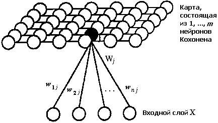 ИНС Кохонена или самоорганизующиеся карты Кохонена (Kohonen’s Self-Organizing Maps) предназначены для решения задач автоматической классификации, когда обучающая последовательность образов отсутствует. Соответственно отсутствует и фиксация ошибки, на минимизации которой основаны алгоритмы обучения, например, алгоритм обратного распространения ошибки (Backpropagation).