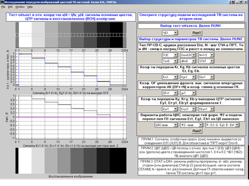 1. Исследование влияния на восстановленное изображение (ВИ) яркости тест-объектов (ТО)и изменения амплитуд сигналов основных цветов.