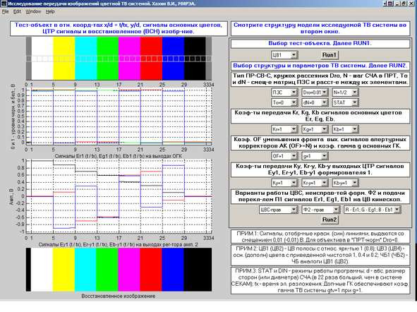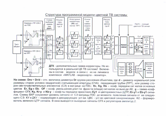 Изучение обобщенной структуры совместимой ЦВ ТВ системы, а также вида сигналов основных цветов, яркостного и цветоразностных (ЦТР), получаемых от тест-объектов типа стандартны ЦВ и черно-белых (ЧБ)полос;
