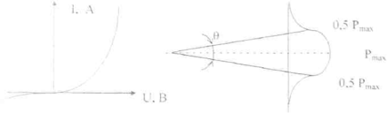 Излучение светодиода имеет угловую расходимость θ, показанную на рис. 3. Распределение мощности относительно оси излучения называется диаграммой направленности излучения. Количественной характеристикой расходимости является угол расходимости θ между двумя лучами, проведенными к точкам с уровнем 0,5 Рmax. Количественной характеристикой расходимости является также числовая апертура источника излучения, которая определяется как: NA = sin θ ,