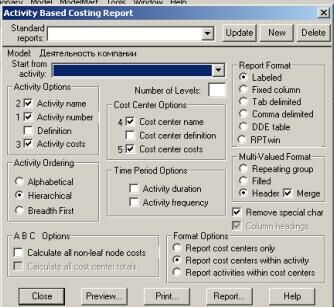 Результаты стоимостного анализа наглядно представляются на специальном отчете BPwin, настройка которого производится в диалоговом окне Activity Cost Report (меню Tools/Reports/Activity Cost Report) (рис. 7.40). Отчет позволяет документировать имя, номер, определение и стоимость работ, как суммарную, так и раздельно по центрам затрат.