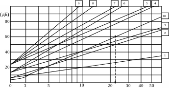 находим по рис.1 вид избирательной системы, подавляющей паразитный зеркальный канал. На этом рисунке номер кривой соответствует виду фильтровой системы преселектора: