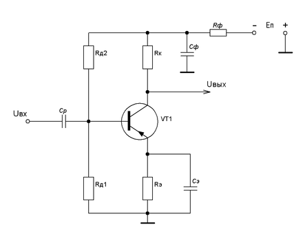 | На одном транзисторе | Биполярный | С общим эмиттером | |