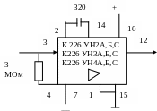 Параметры и схемы включения микросхем серии К 226, предназначенные для усиления низкой частоты.