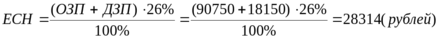7.3.4 Статья затрат: "Единый социальный налог". Единый социальный налог (ЕСН) составляет 26% от суммы основной и дополнительной заработной плат (т.е. от всего фонда заработной платы) и рассчитывается по формуле (7.2):