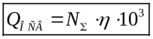 Расчёт тепловыделения от источников искусственного освещения производится по следующей формуле: