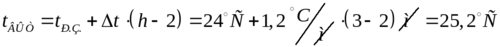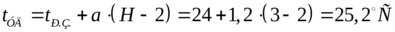Температура воздуха внутри помещения в плоскости 1-1 (приточных проёмов) равна температуре рабочей зоны (