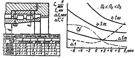 Влияние внутреннего зазора-натяга переднего двухрядного конического подшипника на показатели работоспособности шпиндельного узла показано на рис.2.1 и 2.2.