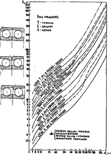 Как видно для обеспечения высокой жесткости и виброустойчивости и незначительного нагрева необходимо устанавливать при сборке требуемый внутренний зазор-натяг. Для опор с радиальными и радиально-упорными подшипниками натяг создается путем смещения наружного кольца относительно внутреннего, а также за счет натяга посадки. Смещение колец подшипника определяет преднатяг опоры - легкий, средний и тяжелый. С увеличением преднатяга жесткость увеличивается, а предельная частота вращения уменьшается, и это уменьшение значительно (рис. 2.3).