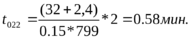 t02=0,23+0,58=0,81мин
