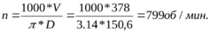 V=Vтабл.*k=270*1,4=378м/мин.