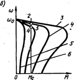 В результате при U 1рег =var искусственные характеристики (рис.3.2,б) оказываются малопригодными для целей регулирования скорости, так как по мере уменьшения напряжения резко снижаются критический момент АД и тем самым его перегрузочная способность, а диапазон регулирования скорости очень мал. Характеристики 3—6 построены при напряжениях 1;0,8; 0,6 и 0,4 от U 1ном.