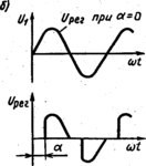 Рис. 3.3. Схема (а) я кривые напряжения (б) однофазного ТРН