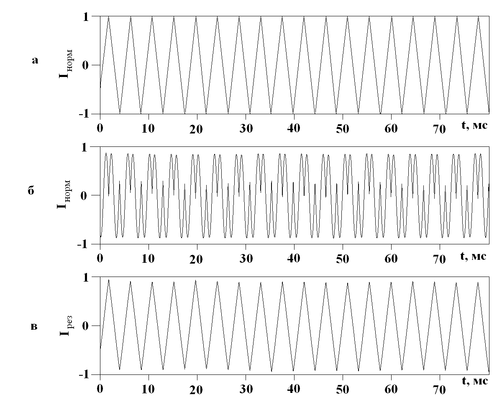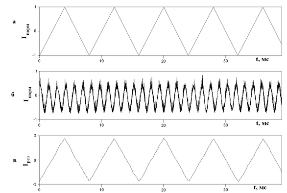 При записи сигнала со звуковой карты автоматически происходит удаление постоянной составляющей и нормирование сигнала, потому на всех рисунках сигналы изменяются в диапазоне от -1 до 1.