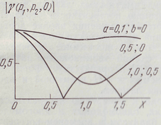 от расстояния между симметричными точками пучка излучения, вычисленные с помощью соотношения (1.7) для многомодового режима генерации лазера, показаны на рис. 1.1 Кривые получены для двух и трех типов колебаний и различных соотношений их мощностей: