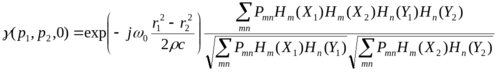 — мощность излучения поперечного типа колебания с индексами т, п; Нт и Нп — полиномы Эрмита; Х1, Х2 и Y1, Y2 — нормированные к радиусу пучка координаты точек