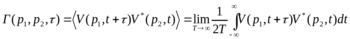 — временная задержка между колебаниями; скобки < > означают операцию усреднения по ансамблю; знак * обозначает операцию комплексного сопряжения. Эта функция описывает корреляцию оптических полей, средние характеристики которых независимы от выбора начала отсчета и времени анализа (что справедливо при