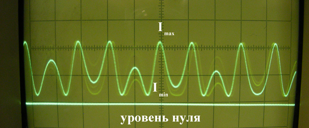 На экране осциллографа интерференционная картина выглядит следующим образом (рис. 3.5):