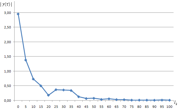 Рис.3.12 Функция временной когерентности полупроводникового лазера