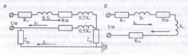 ис. 1. Расчетные схемы зануления на отключающую способность: а – полная, - упрощенная