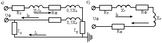 Рис. 1. Расчетные схемы зануления на отключающую способность: а – полная, - упрощенная