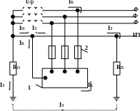 Рис.2 Принципиальная схема зануления в трехфазной сети до 1000В.