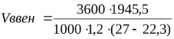 Найдем объем приточного воздуха, необходимого для поглощения избытков тепла в помещениях со значительным тепловыделением из уравнения теплового баланса: