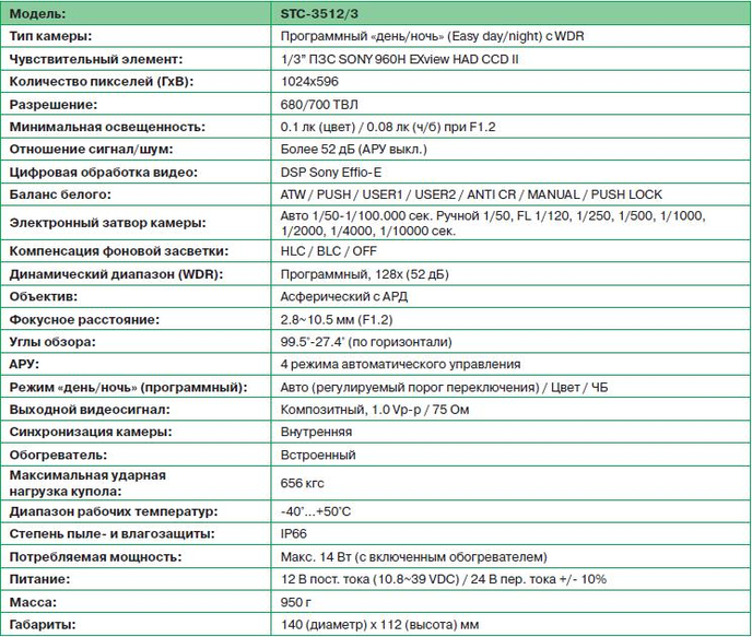 Для видеонаблюдения система использует купольную Видеокамеру STC-3512 «день/ночь» высокого разрешения.