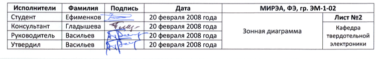 | Студент | Ефименков | 20 февраля 2008 года | Зонная диаграмма | Лист №2 | |