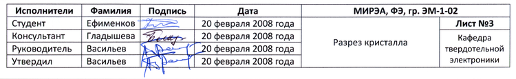 | Студент | Ефименков | 20 февраля 2008 года | Разрез кристалла | Лист №3 | |