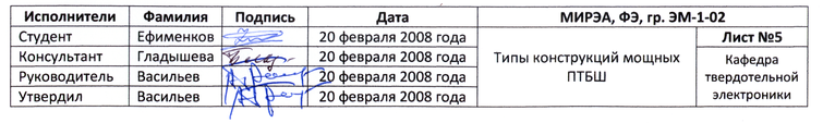 | Студент | Ефименков | 20 февраля 2008 года | Типы конструкций мощных ПТБШ | Лист №5 | |