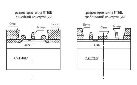Основной тип СВЧ-транзисторов – полевые транзисторы с барьером Шоттки в качестве затвора, выполненные по арсенид-галлиевой технологии. Между затвором и слоем канала введен слой нелегированного GaAs, назначением которого является повышение пробивного напряжения "затвор – сток".