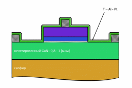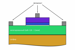 Отжиг омических контактов в печи в атмосфере азота при температуре 700°С в течении 5 минут.