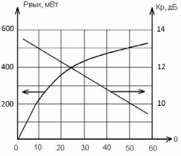 Зависимости выходной мощности и коэффициента усиления от входной мощьности.