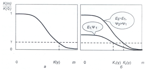 Разрешающей способностью называется максимальное количество линий, которое может быть обнаружено на изображении испытательной таблицы при заданной достоверности обнаружения. Если количество различимых линий ограничено только шумом, а не связано с недостатками аппаратуры отображения, то такую разрешающую способность называют потенциальной. На практике разрешающую способность часто определяют по уменьшению глубины модуляции до определённого уровня, например 10%. Максимальное количество разрешаемых линий на телевизионном растре связано с уменьшением коэффициента передачи сигнала с увеличением пространственной частоты. Зависимость глубины модуляции сигнала от пространственной частоты называется частотно-контрастной характеристикой (ЧКХ). При стандартных измерениях ЧКХ зависимость глубины модуляции от пространственной частоты снимается по максимально контрастным оптическим мирам и при освещённостях фотоприёмника, которые обеспечивают максимальное отношение сигнал/шум от крупных деталей изображения (рис.5.4 а). Максимальная разрешающая способность из графика на этом рисунке определяется по пересечению ЧКХ с пороговым уровнем