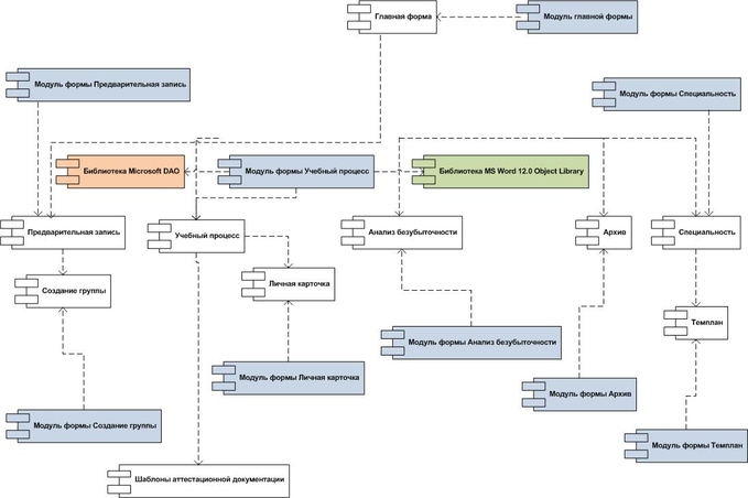 Рисунок 3.3 — Схема компонентов АРМ для учета, планирования и анализа учебной деятельности